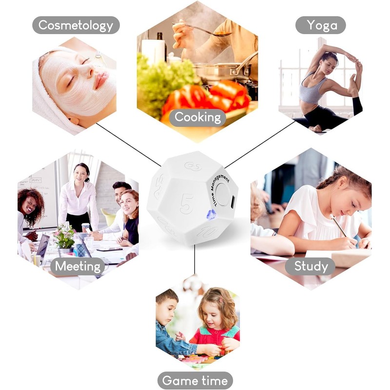 - Improve efficiency: This 12 sided cubic timer helps you focus on any job you are currently engaged in, such as learning, writing, and improving your work efficiency. Use a timer to divide your work into intervals of 25, 30, or 45 minutes, and take a brief break of 5 or 10 minutes