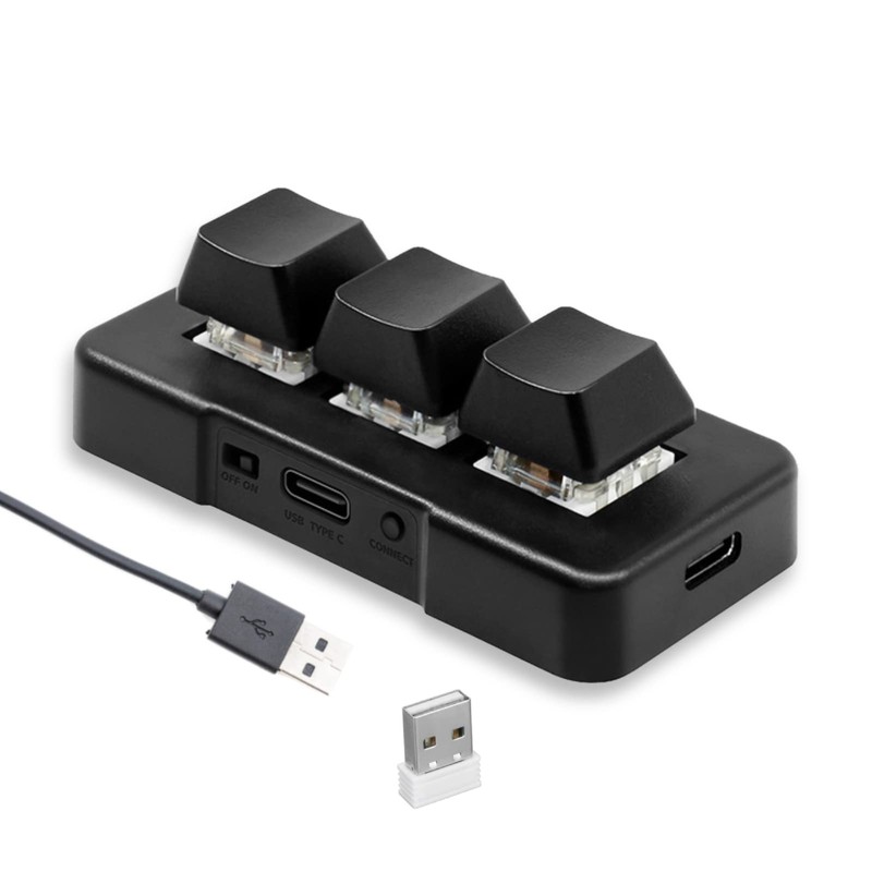 • INTRODUCTION: This is a Bluetooth + 2.4G + USB tri-mode mini 3 keys keyboard, the keys have the function of customization, through the supporting software to define the keys as keyboard, mouse, string, multimedia and macro definition functions.