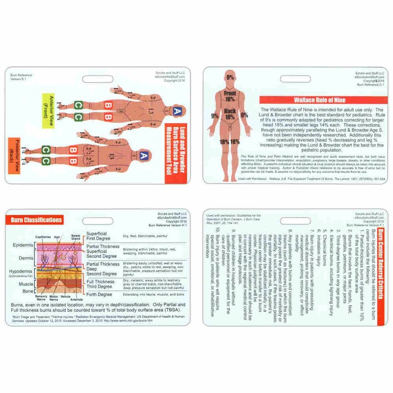 - 4 card set of reference badge cards geared toward anyone who works with burn patients
