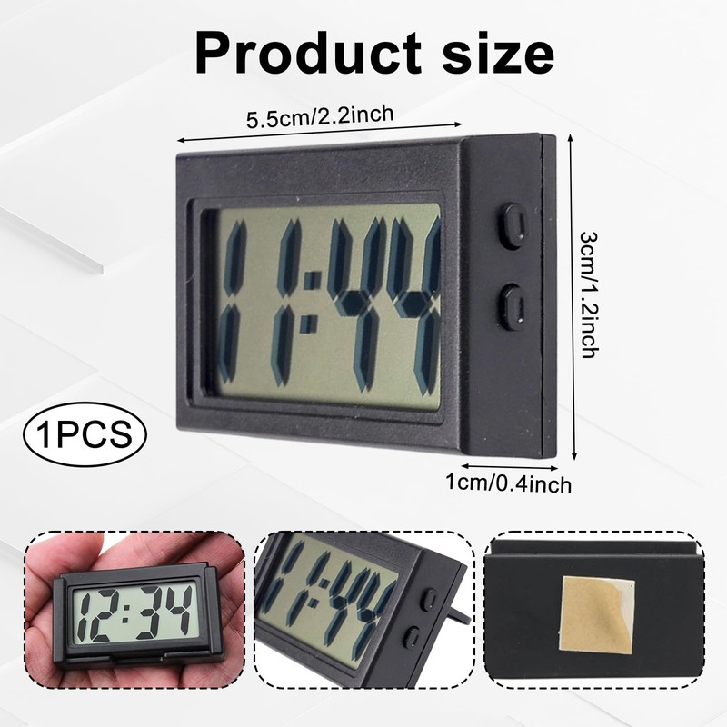 - Your timer: the mini car clock is 1 x 3 x 5.5 cm. Thanks to its compact format and light weight, the mini digital watch is the ideal companion for on the go. Always carry your vehicle electronic digital watch with you and ensure that you are never late again.