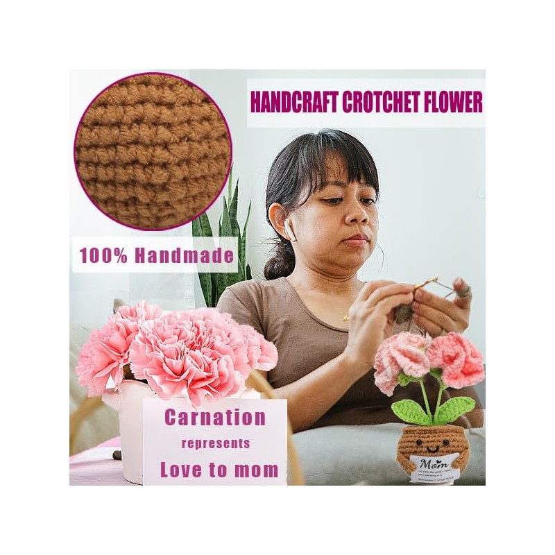 - CUTE STRESS RELIEF GIFT: Whether you're looking for an emotional boost on a tough day, in need of a cute desk companion, or seeking some laughs during work hours, these mini crochet carnation are here to help your mom, letting her know that your love is always with her