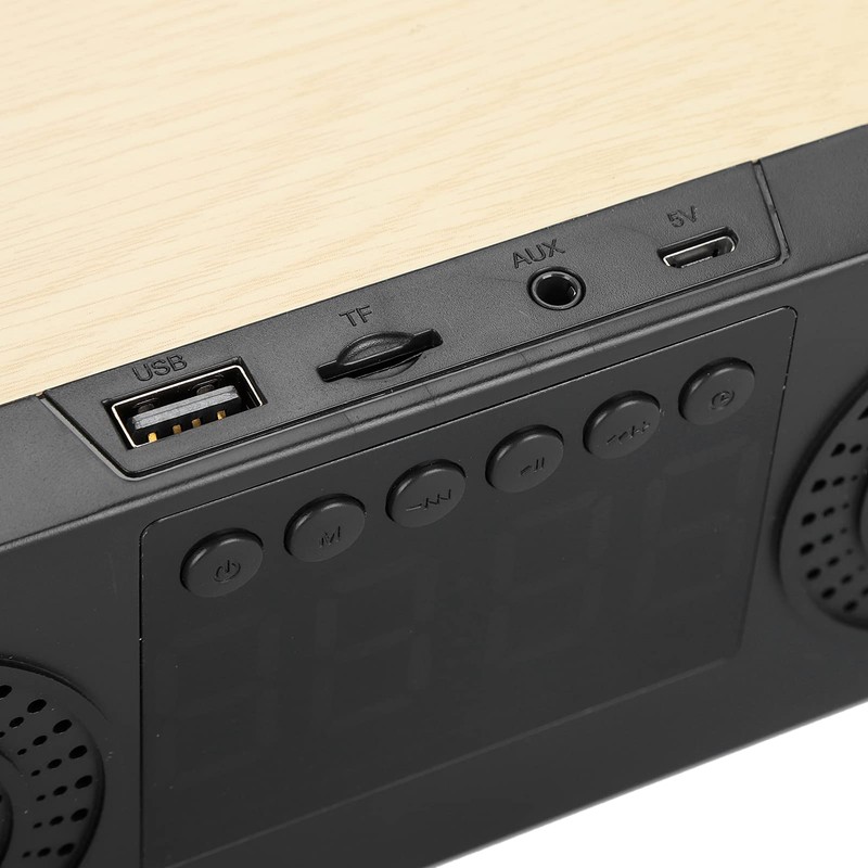 Mini Digital Alarm Clock Speaker, Portable Multifunctional Horn with Radio and Dual Stereo Sound Speakers, Outdoor Rechargeable Portable Speaker for 5.0 (Yellow Wood Grain)