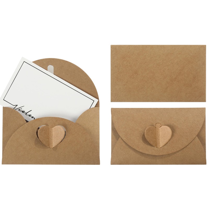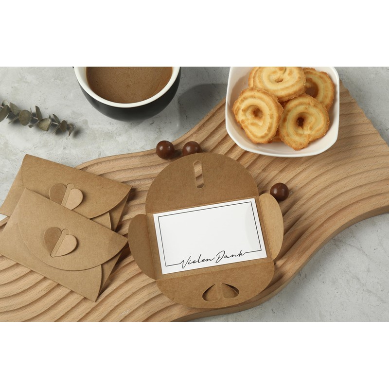 Mini Envelopes with Heart Closure (Set, 50 Envelopes, 50 Cards, Thank You) Kraft Paper
