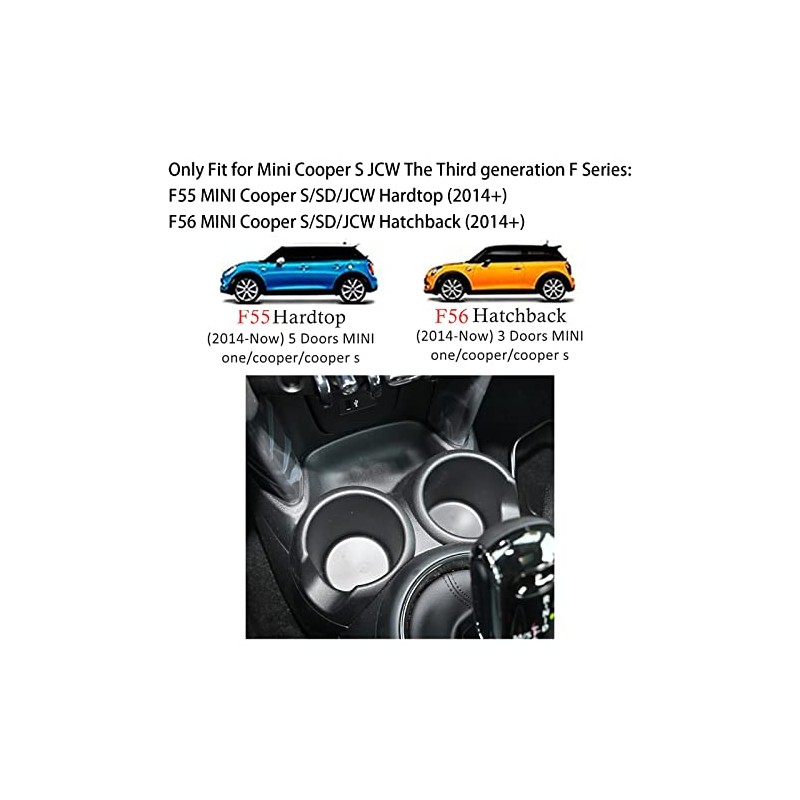 - Only compatible with Mini Cooper One/D/SD/S/JCW The third generation F series: F55 Hardtop 2015-2021, F56 Hatchback 2015-2021; Please confirm your car cup holder before purchase. The shape of the console slot should be as shown in the picture.