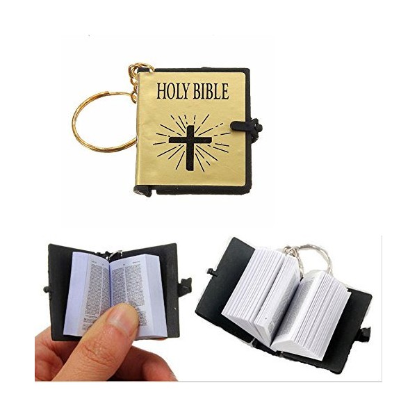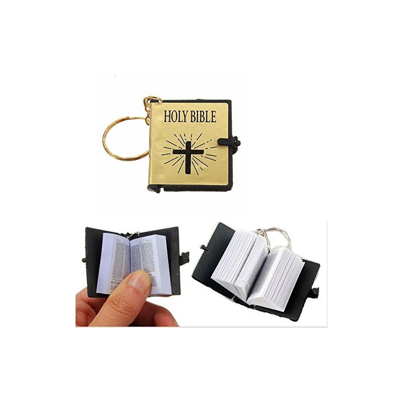 - Size of the Bible: 1.5" x 1.25" x 1/2" thick , size with Chain: 4"