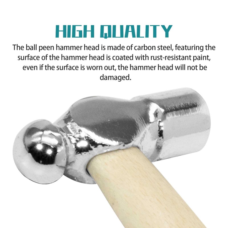 - High Quality: The ball peen hammer head is made of carbon steel, featuring the surface of the hammer head is coated with rust-resistant paint, even if the surface is worn out, the hammer head will not be damaged.