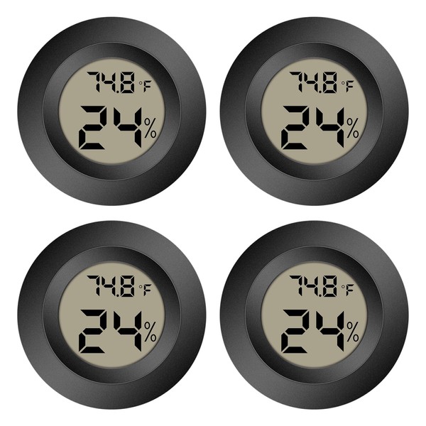 Mini Hygrometer Indoor Outdoor Thermometer Humidity Meter Digital LCD Temperature and Humidity Monitor Humidity Gauge for Greenhouse Humidor Reptile Thermostat Jars Fahrenheit(℉)/ Celsius(℃) 4 Pack