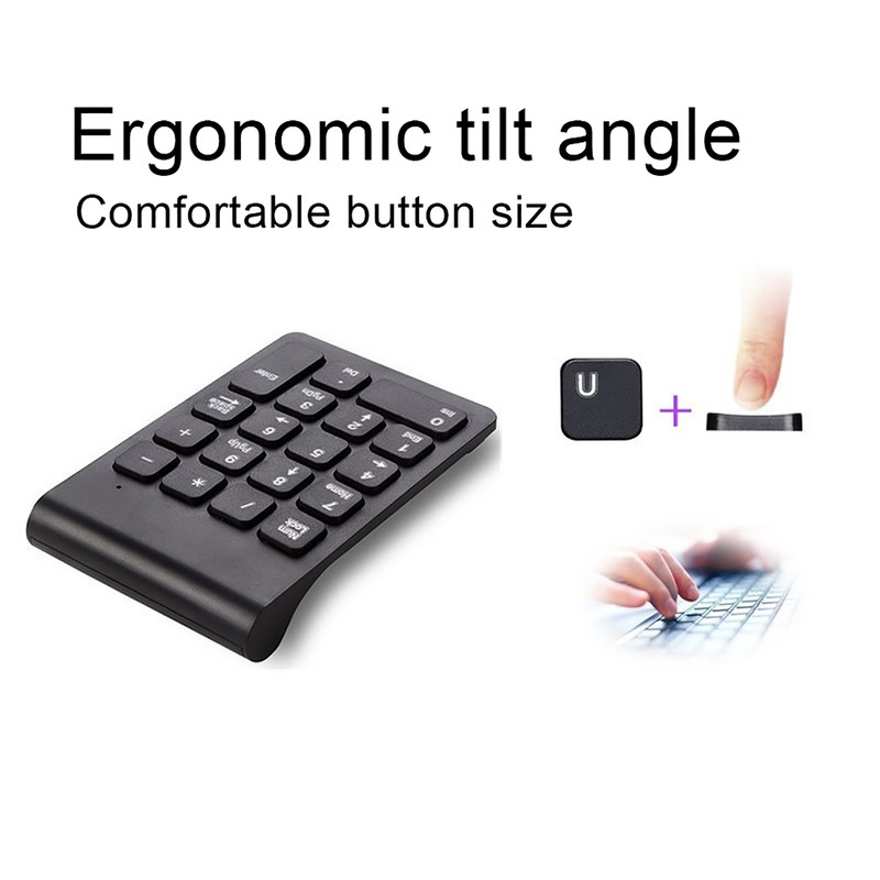 1、The external numeric keyboard allows you to get rid of the problem of slow input numbers. 2、Such keypad does not take up much space, and the 2.4G wireless design can make the desktop look more stylish. And exquisite keys can fit your laptop perfectly. 3、Using 2.4G technology, you only need to plug the for nano receiver into the USB port to enjoy fast and stable signal transmission. 4、Lightweight, USB keyboard's perfect size fits into a laptop bag, which can be easy to carry on the go. 5、Excellent elasticity and comfortable button size enable fast and soft typing without losing any buttons, making it an impeccable product. Ergonomic tilt angle make such numeric keypad can be used comfortably for a long time.