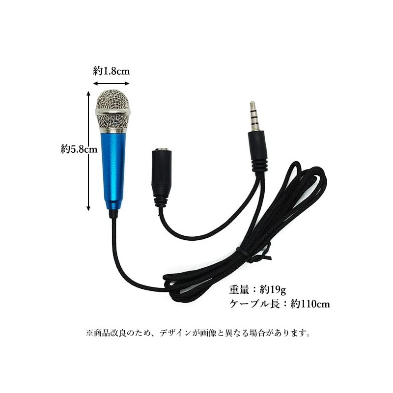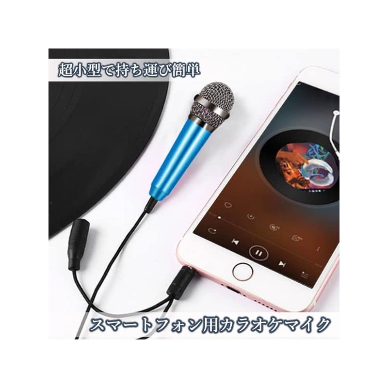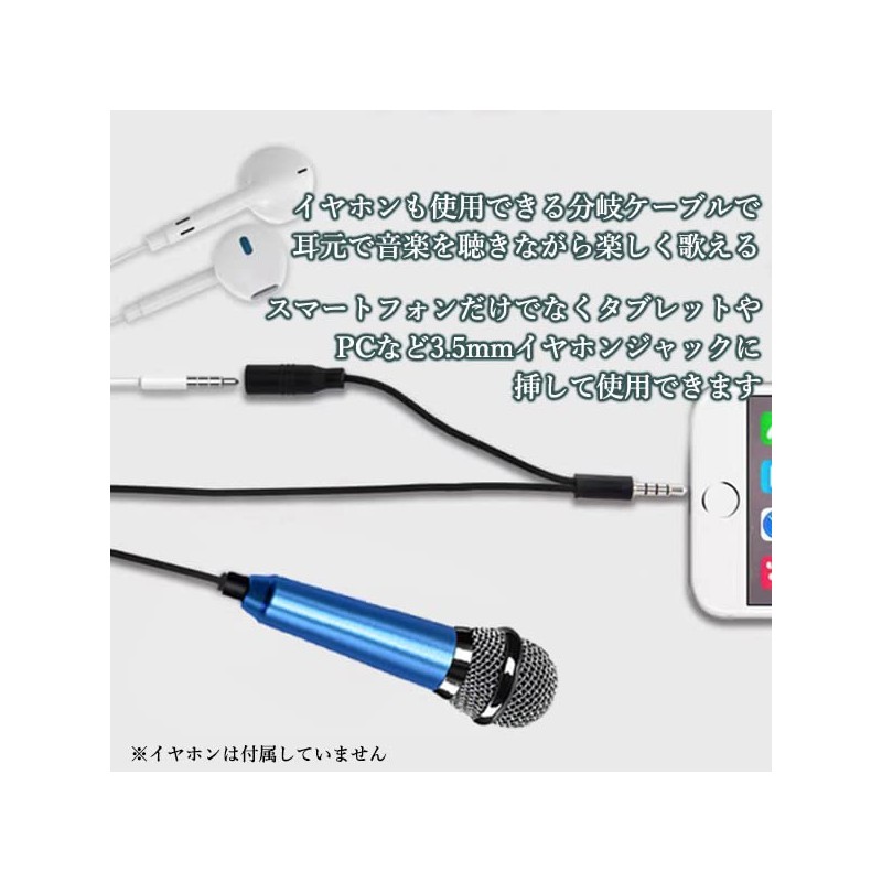 Mini karaoke microphone for smartphones. You can enjoy the feeling of karaoke by yourself. Compact size makes it easy to carry. Product Specifications: Color: Blue. *This product is compatible with 0.14 inch (3.5 mm) earphone jacks.