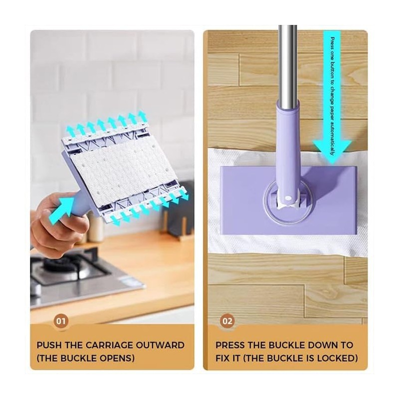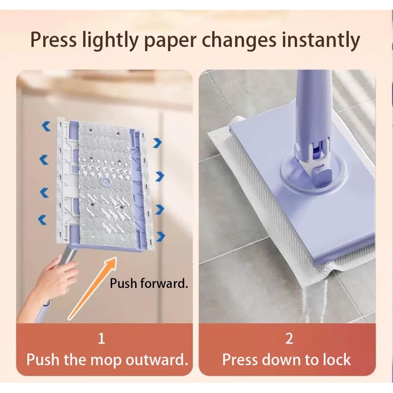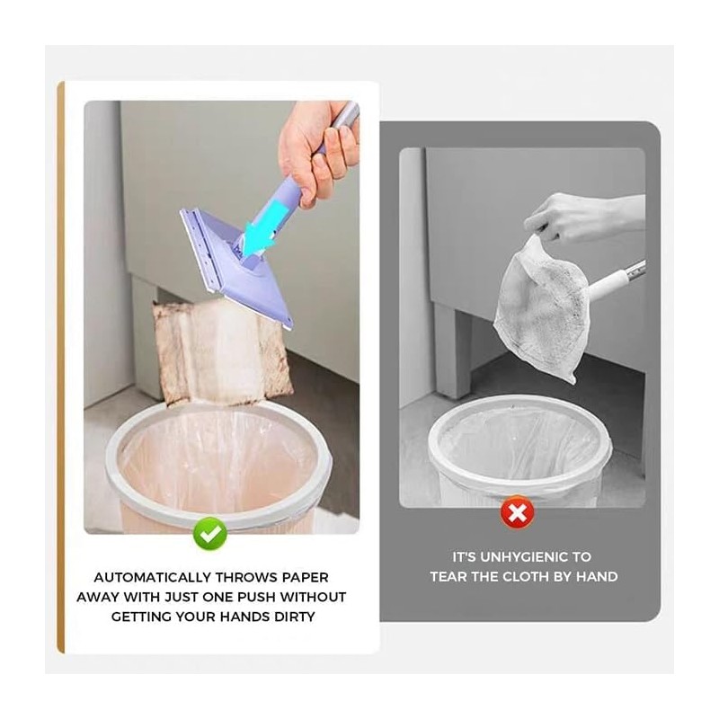 - 【1 Second Installation】Whether it is clamping the paper towel or throwing it away, it is very simple. You only need to press the mop to clamp the paper towel, and then gently pull it to throw away the dirty paper towel after cleaning.