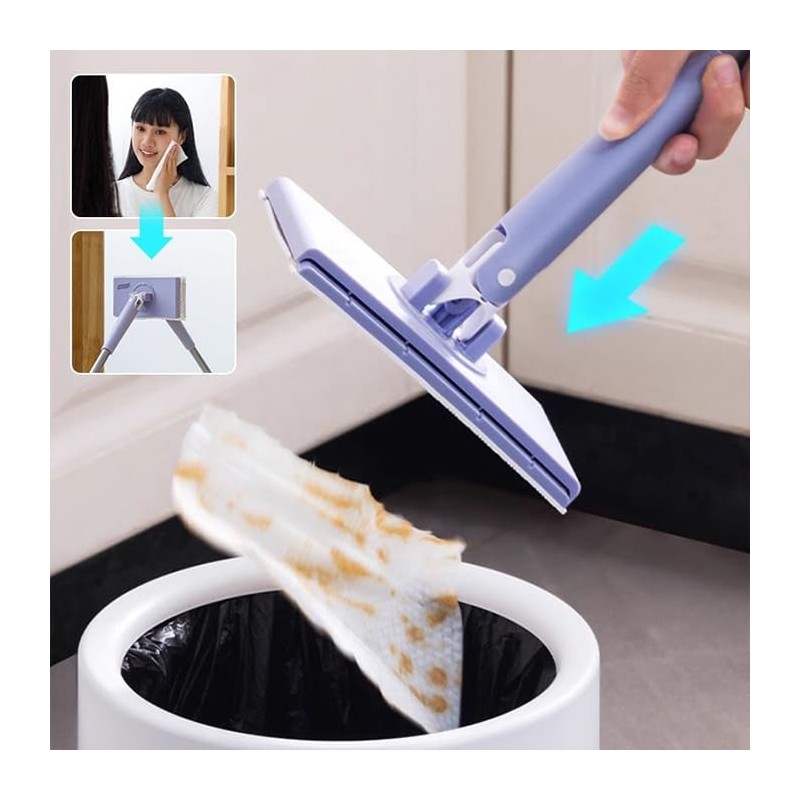 Mini Mop - The Game-Changer,Clip-on mop,Automatic Cloth Changing Mini Mop, Automatic Cloth Changing,360°Rotating Head Push-Pull Handle Design for Kitchen,Bathroom (Blue)