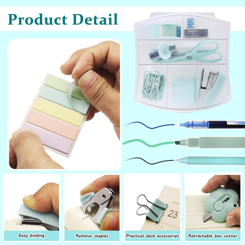 - 【Teal Appearance】Uniform teal and exquisite design of mini office supply makes your desktop look clean, tidy and bright. Practical and beautiful, the rich combination office desk supplies can meet your daily office work needs. Please share this stationary supplies with your friends and colleagues now!