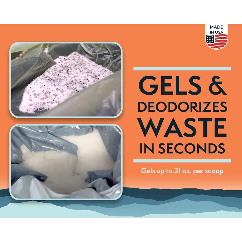 - Each scoop gels and solidifies 21 oz. of liquid and solid waste.