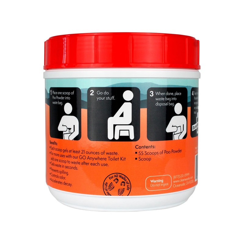Cleanwaste Portable Mini Poo Powder Deodorizing Waste Treatment - 55 Scoops - Pee and Poop Gelling Powder for Camping, Travel, Emergencies