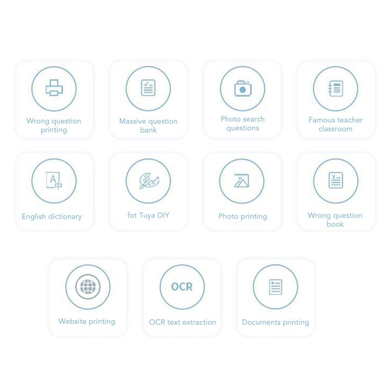 1、Environmental Thermal Printing: Mini portable thermal uses inkless printing and can be printed with paper. Photos are not dirty to the hands, the printing effect is clear, environmental paper is safe and harmless, and the printing process is odorless, just to protect children's safety. 2、Rich Functions: One click printing through the Tiny printapp saves time and effort. The app offers a variety of templates for you to choose from, including tags, lists, messages, and various material themes. By selecting different types of materials, you can directly print images. 3、Wrong Question Printing: You can use the mini portable thermal printer as a child's exclusive learning tool, take photos and print out the wrong questions for children to organize, or print out the learning materials and stick them on the textbook for review. 4、Quick Connection: Quickly and easily connect all for iOS and for Android smartphones to the printer's exclusive app in just a few seconds through Bluetooth, and you can start printing immediately. 5、Portable and Compact: The pocket printer features a sleek design with a small and lightweight body and palm size, allowing you to put it in a pocket or bag and carry it with you. 6、Cute Design: The portable thermal printer has a rounded appearance and a cute design that makes children love using printers. It is the best gift for children.