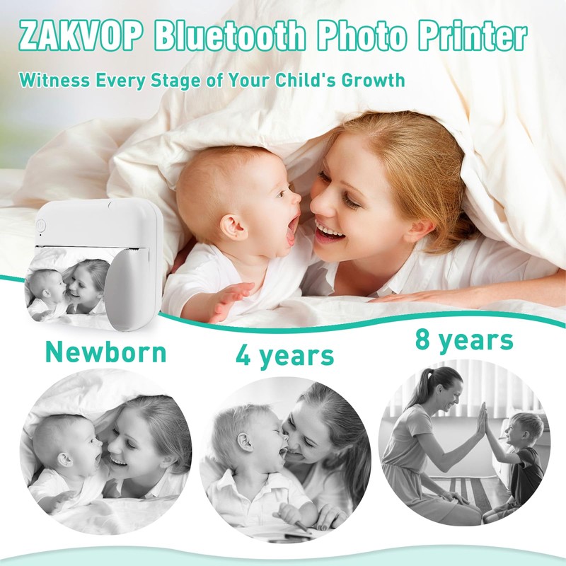 mini printer, mini photo printer, portable printer inkless, inkless sticker p...