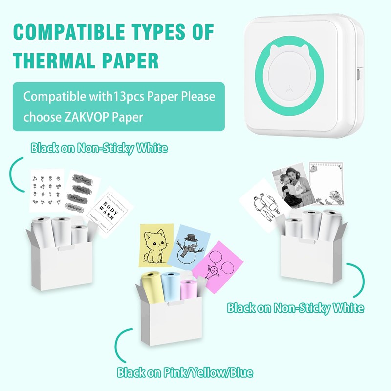 • 【POCKET THERMAL PRINTER FOR MOBILE PHONES SERVICE GUARANTEE 】 Our mini printer for smartphones without ink is an excellent gift choice for students, couples, family members, friends etc. and a little helper to record a good life We offer a lifetime warranty and a 180-day full refund or replacement for new products. If you have any questions, please let us know and our customer service team will reply you within 24 hours.