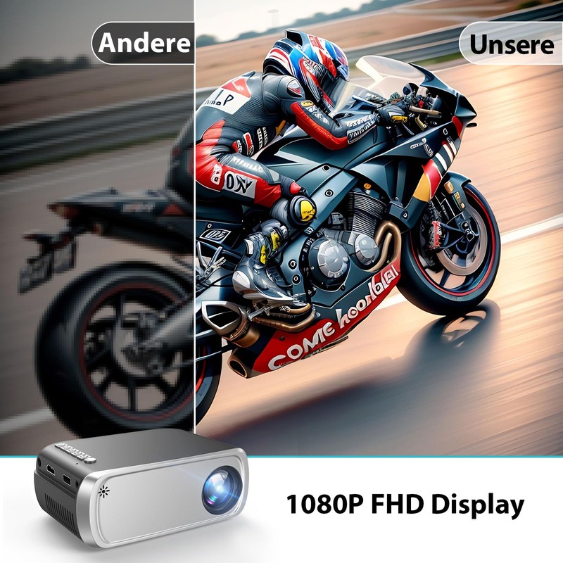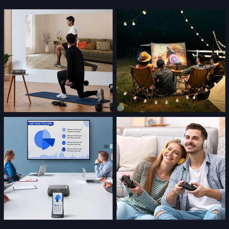 - High resolution display: Enjoy crystal clear images with 1080P supports 4K Ultra HD resolution (only supports some special file formats), delivers sharp and vivid images with a contrast of 8000:1 for an immersive viewing experience (for a better experience, please use the projector under the dark environment).
