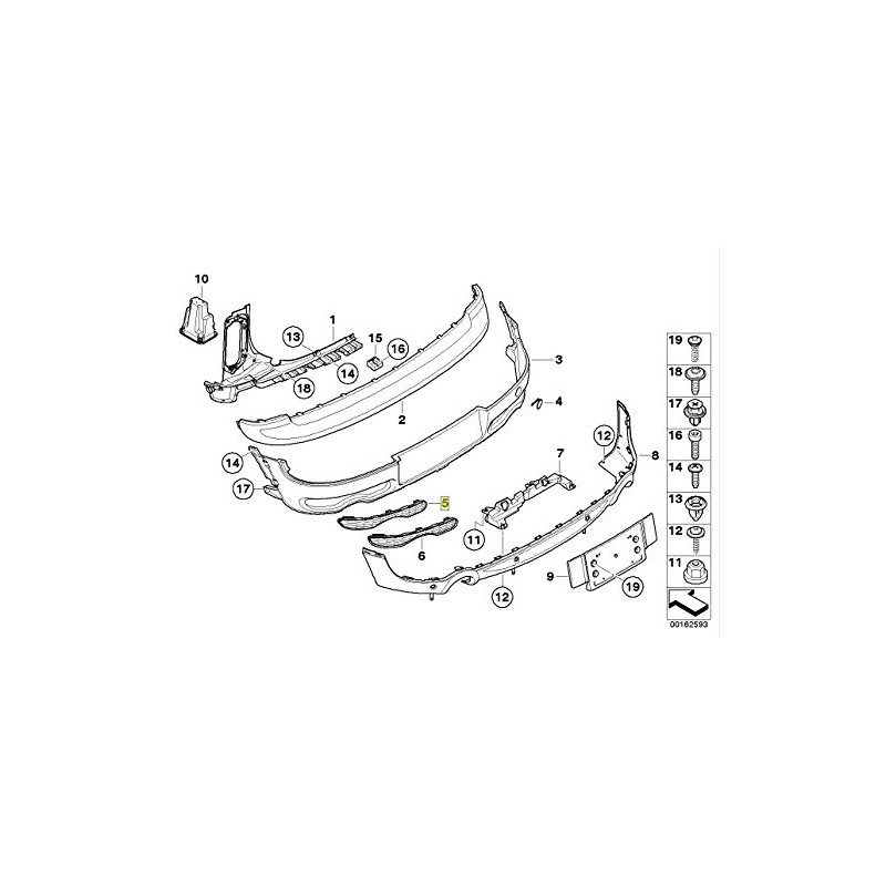 MINI R55 Rear RH Bumper Grille Trim Insert 7173634 51127173634 Genuine