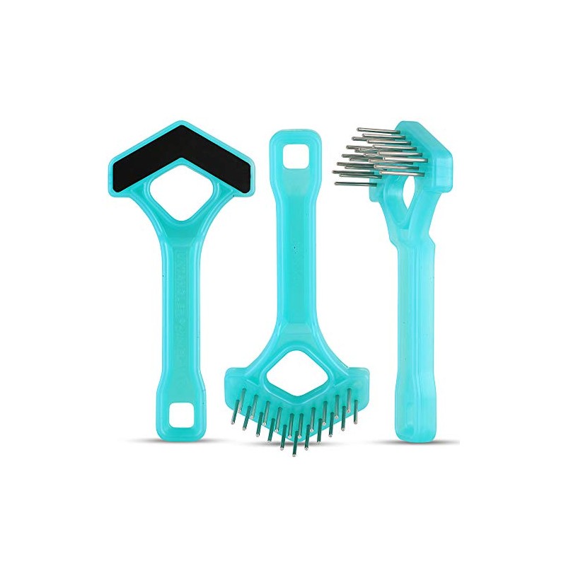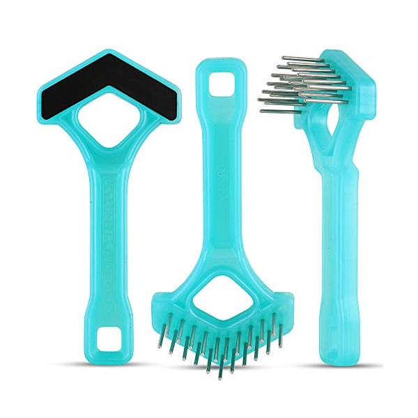 Mini-Rake V-Shaped with Double-Row Rotating Teeth (Aqua-Blue/Black Top)
