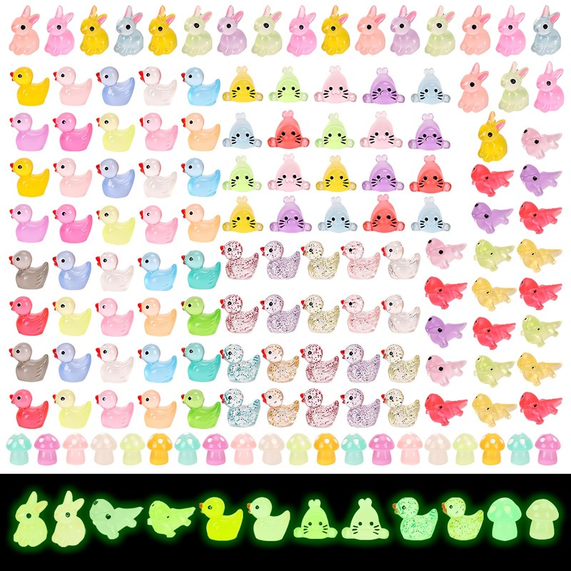 - Value Combo Set: 140-Piece Assorted Animal Designs Introducing a fantastic value combo set featuring 140 pieces across 6 delightful animal designs—ducks, mushrooms, lizards, seals, rabbits, and more! These cute and vivid designs offer a substantial quantity that caters to your decoration and replacement needs. Perfect for garden landscaping, aquarium décor, pot embellishments, and a variety of other scenes, they will glow in the dark to create a magical ambiance.