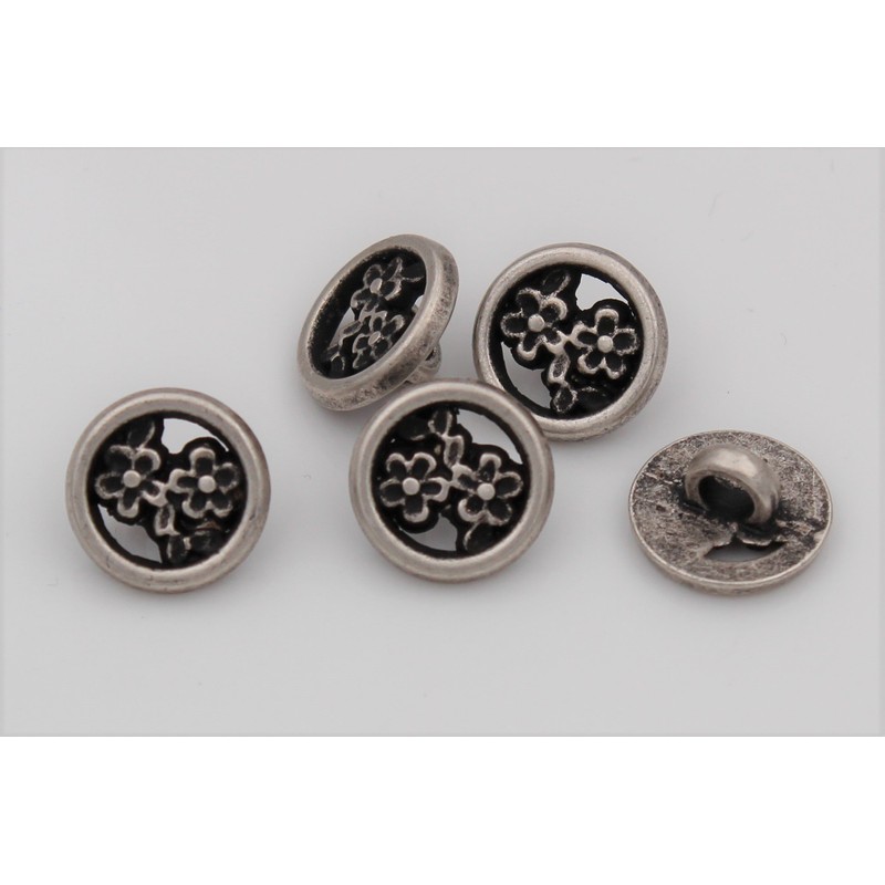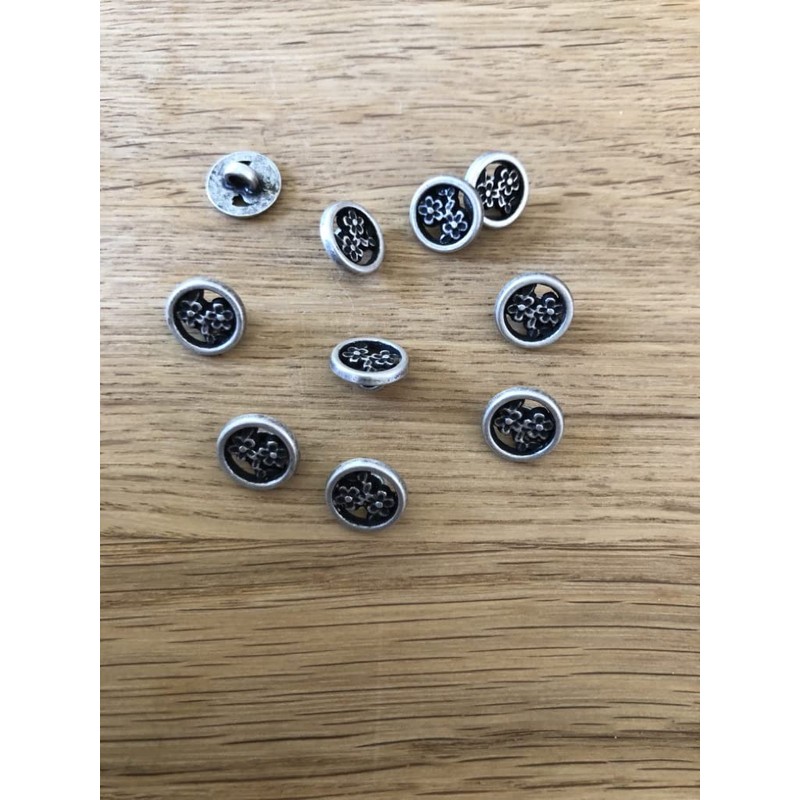 Mini Small Metal Buttons Antique Silver with Flowers 11 mm (Pack of 10)