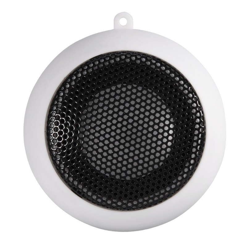 With hang hole design, this speaker built-in battery is so small and lightweight that you can take it anywhere anytime. Equipped with a 3.5mm audio cable at the bottom, you can listen to music after connection with mobile phone, MP3, MP4, computer and other devices with a 3.5mm audio jack.