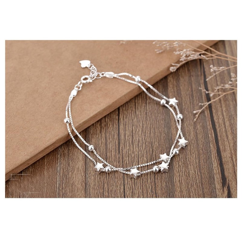 Mini Star Charm Bracelet for Women Girls 925 Sterling Silver Dainty Cute Small Galaxy Beaded Chain Bracelets Layered Adjsutable Snake Box Chain Fashion Chik Link Birthday Party Jewellery Gifts BFF