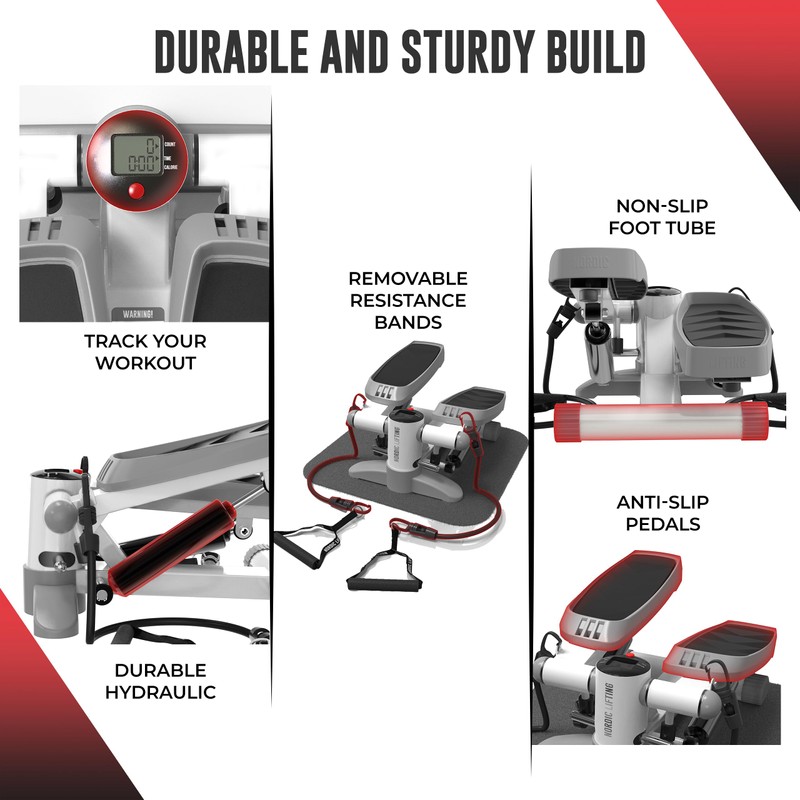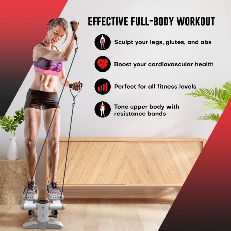 - MINI STEPPER WITH RESISTANCE BANDS SET - Compact Foot Stepper Machine with Resistance Bands makes for a Full Body Workout