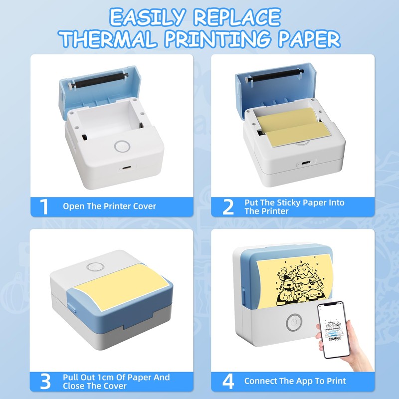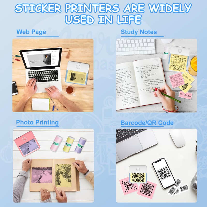 With a 200dpi high-resolution print head, this mini printer for iPhone delivers sharp and detailed stickers, perfect for DIY crafts, journaling, scrapbooking, study notes, memos, meeting minutes, shopping lists, and travel photos.