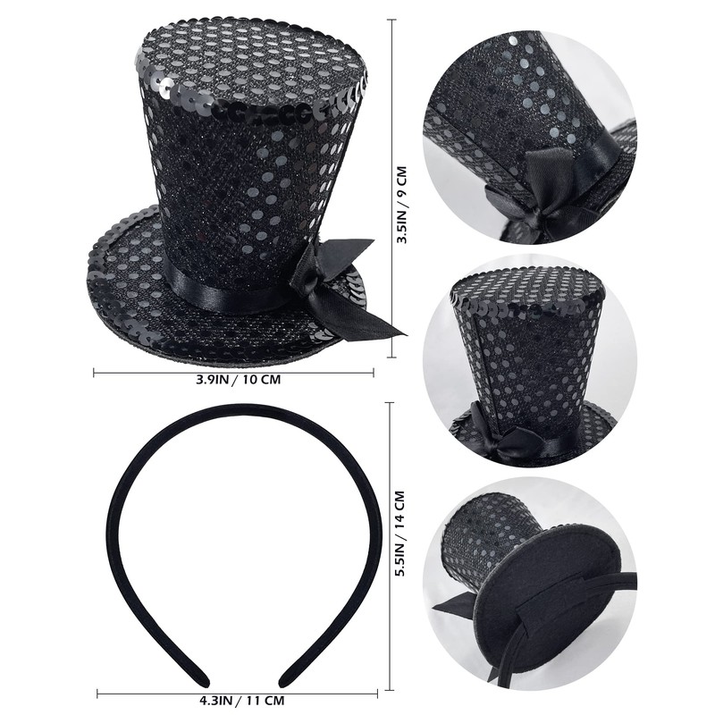 - 【Mini Glitter Top Hat】Give yourself a dapper look with this stylish mini top hat! It's the perfect accessory for a Roaring 20s party, Victorian wedding, Halloween, or other themed events. Dress up as a circus ringmaster, Dickensian caroler, magician, steampunk gent, mad hatter, and just about anything else you can imagine! This mini top hat costume won't disappoint