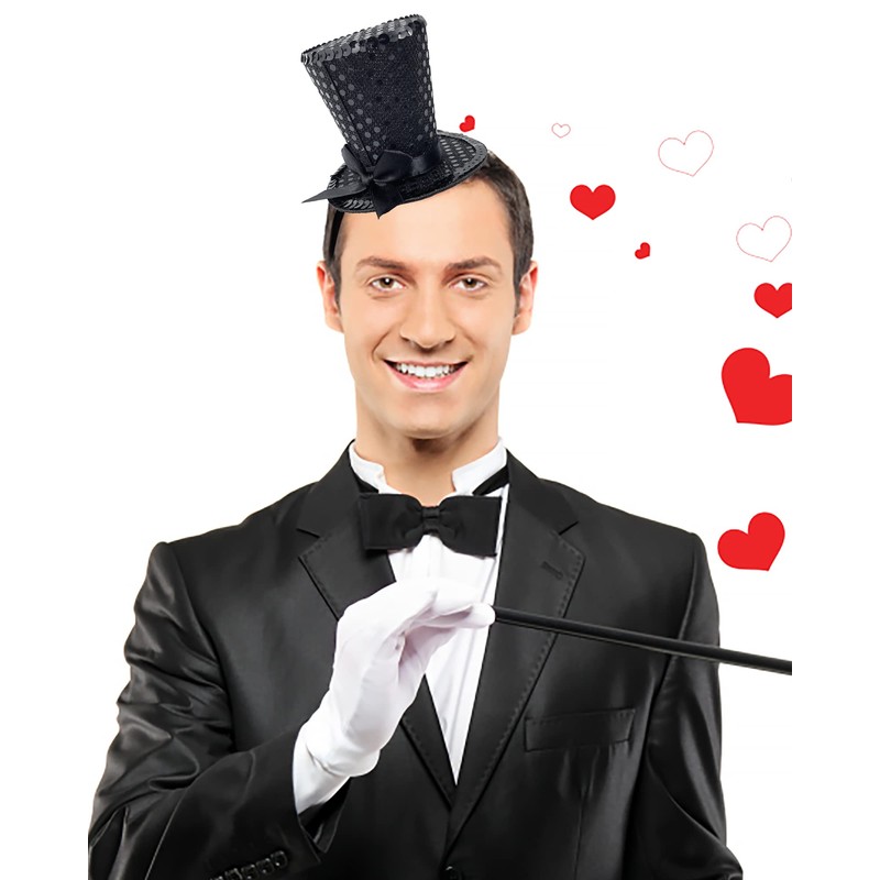 - 【Black Hat on Headband】Deluxe Mini Black Top Hat on a black headband.Lightweight and easy to wear! Great for Men and Women! Perfect for parties, bar crawls, parades and more