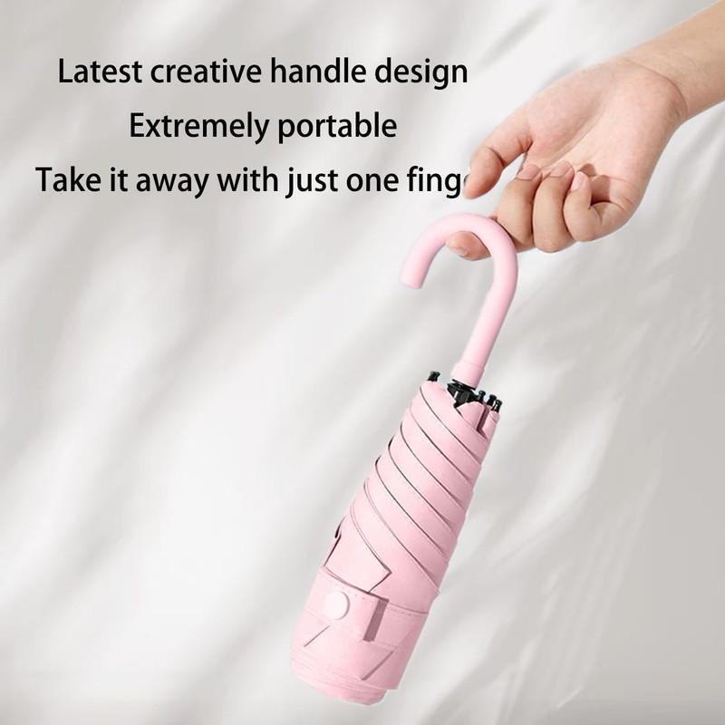 - Mini Travel Size----Since the compact travel folding handheld umbrellais made of 6 reinforced fibreglass umbrella bones, it is so compact and lightweight that it can be carried casually in your purses, briefcases, backpacks, luggage,car and more.It is very suitable for kids and women's daily outings and commuting to work because it can be easily hung on the hands.And it also provides great convenience for outdoor hiking, camping, walking, fishing, and other activities.
