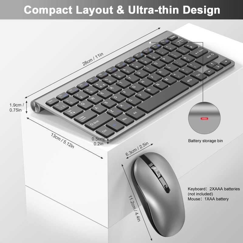 Comfortable & Quiet Typing: Scissor-switch construction keys of wireless keyboard matches your fingertips perfectly and provides you comfortable typing. Which is effectively improve your work efficiency and its low tone mitigates the interference for work