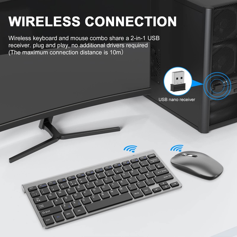 - Plug and Play - The wireless keyboard mouse combo will get connected to your computer as soon as you simply plug the USB receiver (stored in the mouse) into the USB port, plug and play, no additional drivers required