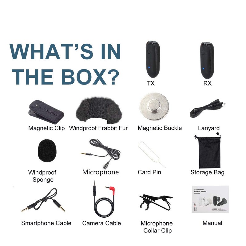 Mini Wireless Lavalier Mikrofon System,LENSGO LWM-318C 20-Kanal UHF Professional Omnidirektionales Kabelloses Ansteckmikrophone Set mit 1 Sender und 1 Empfänger für Canon Nikon DSLR Kamera Smartphone