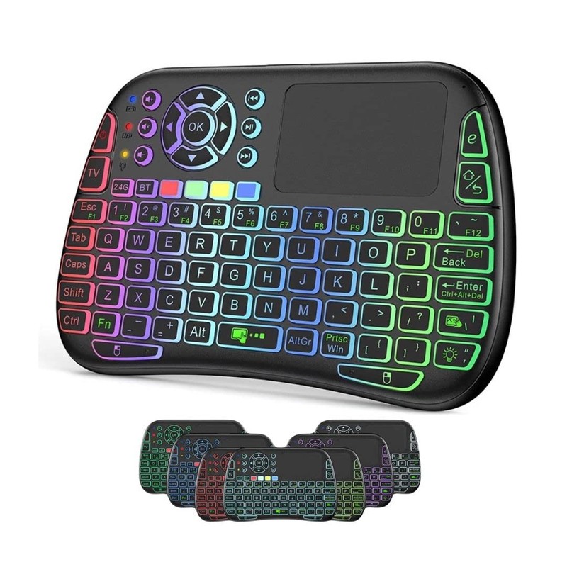 Mini Wireless QWERTY Full Keyboard Touchpad Mouse Combo | Colorful Backlit keypads | BT 5.2 + 2.4Ghz Wireless Technology | Rechargeable Li-ion Battery |