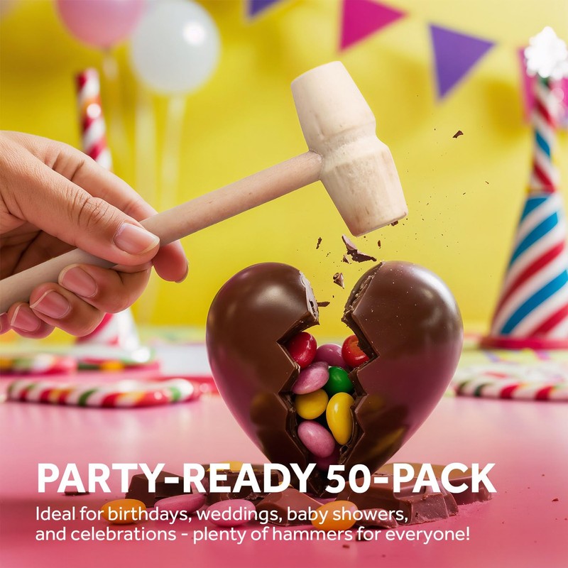 - Perfect for Sweet Surprises! Break into your chocolate heart with ease using these adorable mini wooden hammers—just the right size for small hands and big smiles!