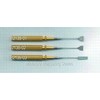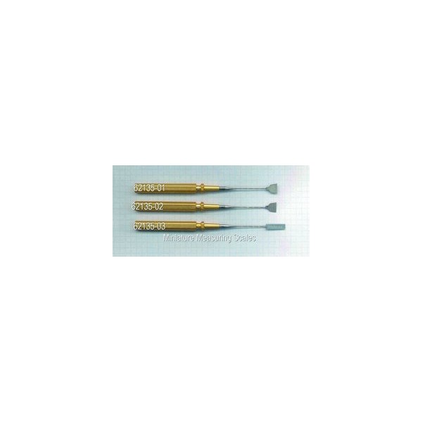 Use under the microscope for measuring small specimens or objects. Made from stainless steel, welded to bendable stainless steel shafts, color coded, non-rolling handles. Length of scale is 83mm. Calibrated to 0.1mm, 5mm total