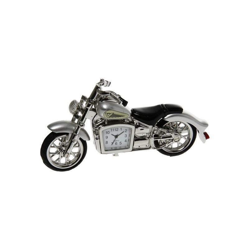 MINIATURE SILVER CLASSIC MOTORBIKE NOVELTY QUARTZ CLOCK BOXED