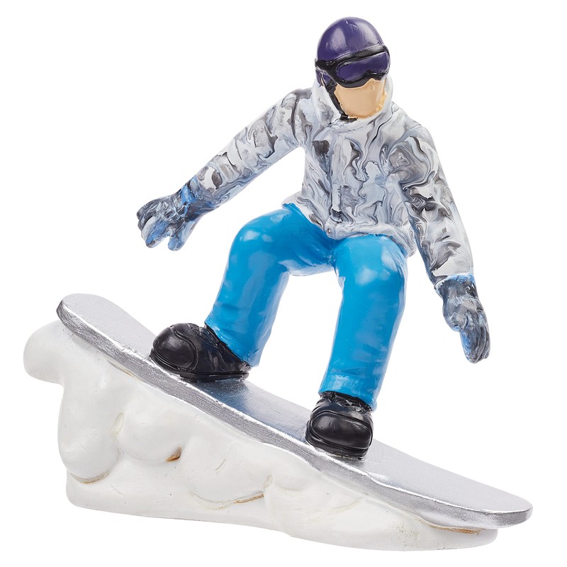 Miniature snowboarder, approx. 9.5 cm made of polyresin. The cool figure is suitable for designing miniature landscapes of model railways, for decorating bowls and trays or simply as a figure on the windowsill or dresser. With decorative snow, a winter look is achieved.