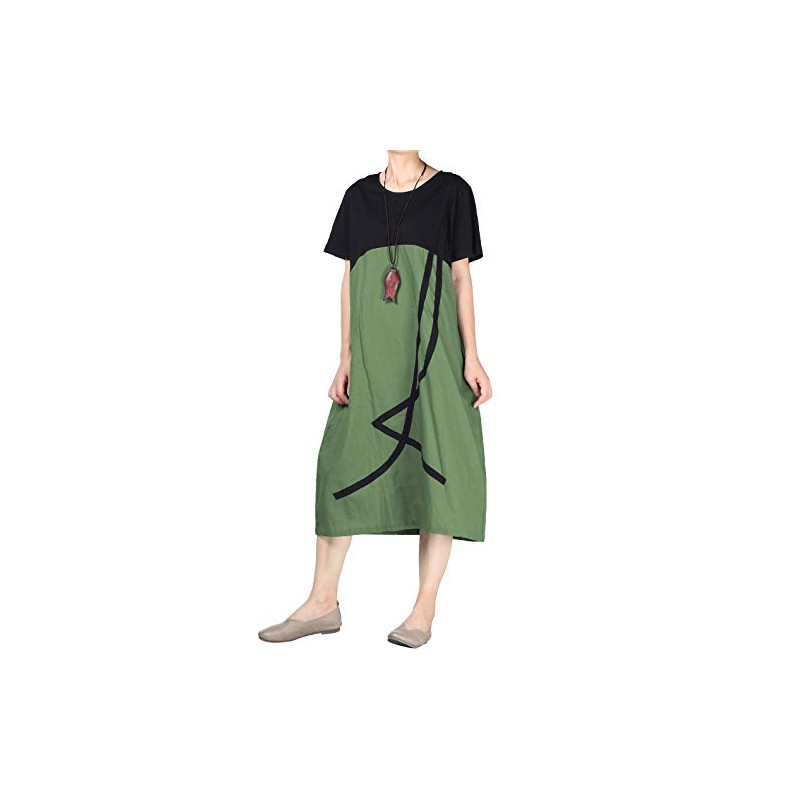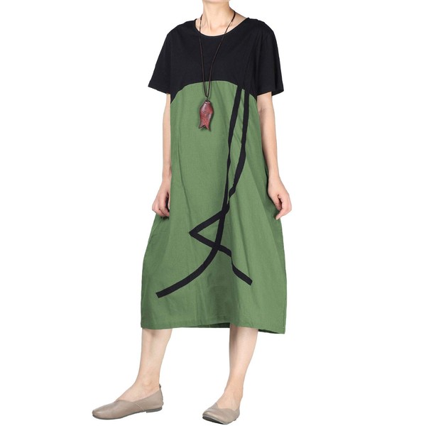 - Features:Women's short sleeve flowy long linen dress, round neck and knee length,unique color block design made it more trendy and the loose a-line fit can hide belly fat