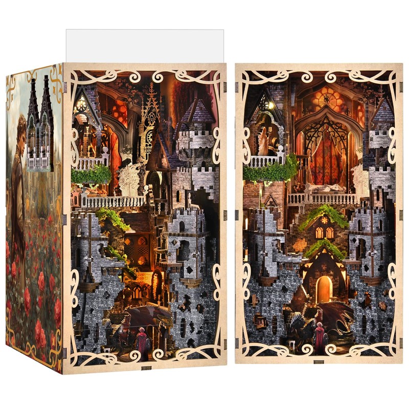 - MiniCity Book Nook Kit: The story begins with an ancient curse - a beautiful princess falls into a deep sleep and the entire kingdom is engulfed by endless thorns. At the same time, a ferocious dragon is inhabiting the land, not only as the embodiment of the curse, but also as a dark force that thwarts all hope. When the warrior finally defeats the dragon and breaks the curse, the sleeping beauty will awaken and the castle will be revitalized, opening up a whole new era
