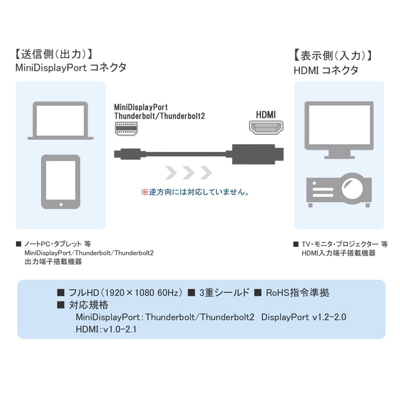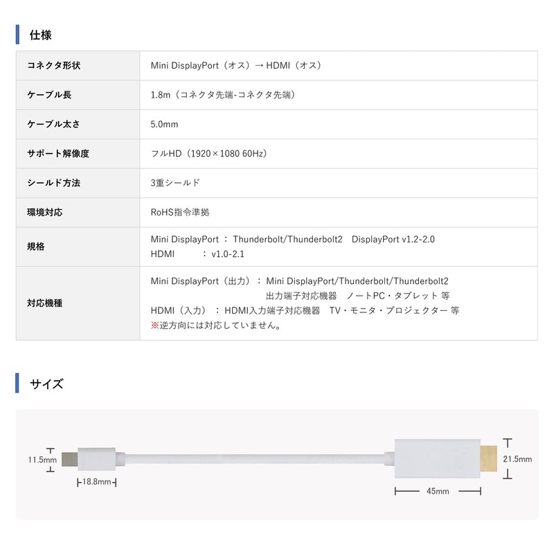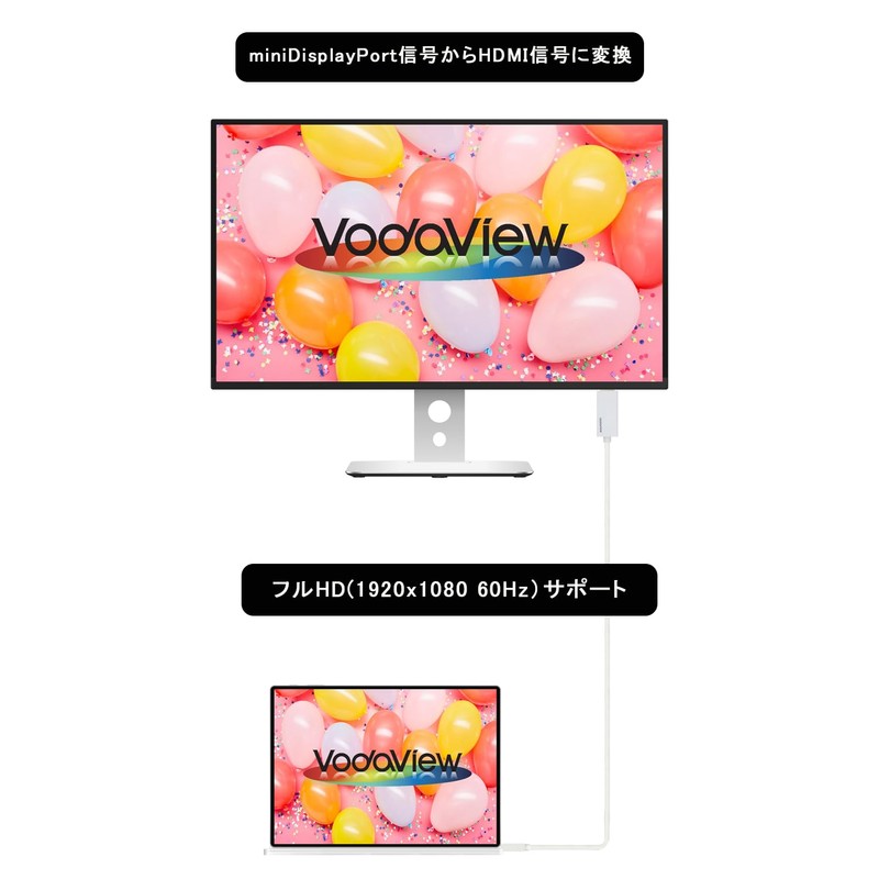 - Convert miniDisplayPort (Thunderbolt/2) signal to HDMI signal and output to monitor