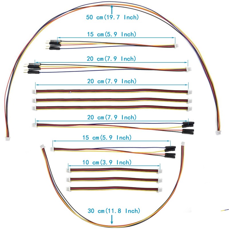 - Includes 14 pcs cables of various lengths and styles (10cm/3.9",20cm/7.9", 30cm/11.8", 50cm/19.7". SH1.0 connector and breadboard Jumper and Female Jumper and Alligator clip)