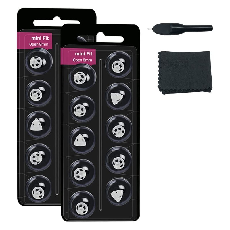 MiniFit Open Dome 8mm Ear Tips for Oticon Hearing Aids with Multifunction Cleaning Brush Tools Kit
