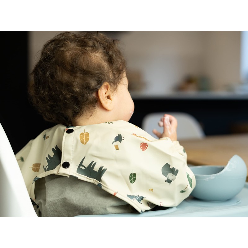 Minifolk Long Sleeved Waterproof Coverall Bib | 6 to 24 Months | Messy Play Bib | Wipeable Washable | UK designed | Toddler Apron | Baby Bib | Weaning Bib | Child Bib (Safari)
