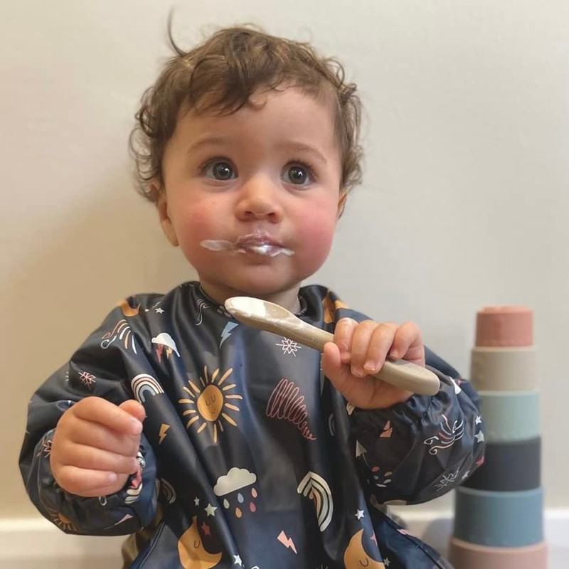 - Waterproof full cover bib with food catching pocket - Perfect for messy weaning and messy play