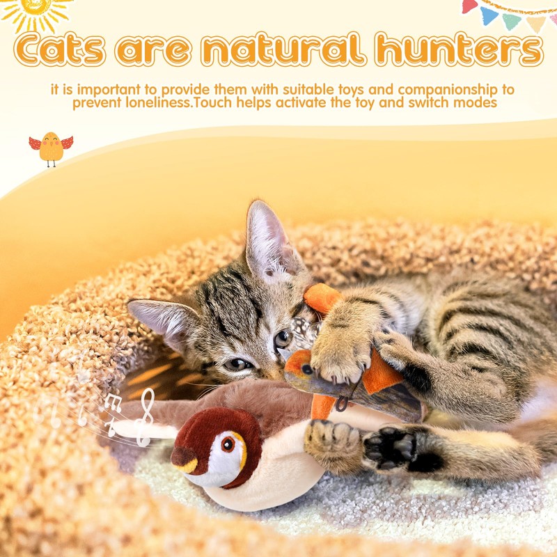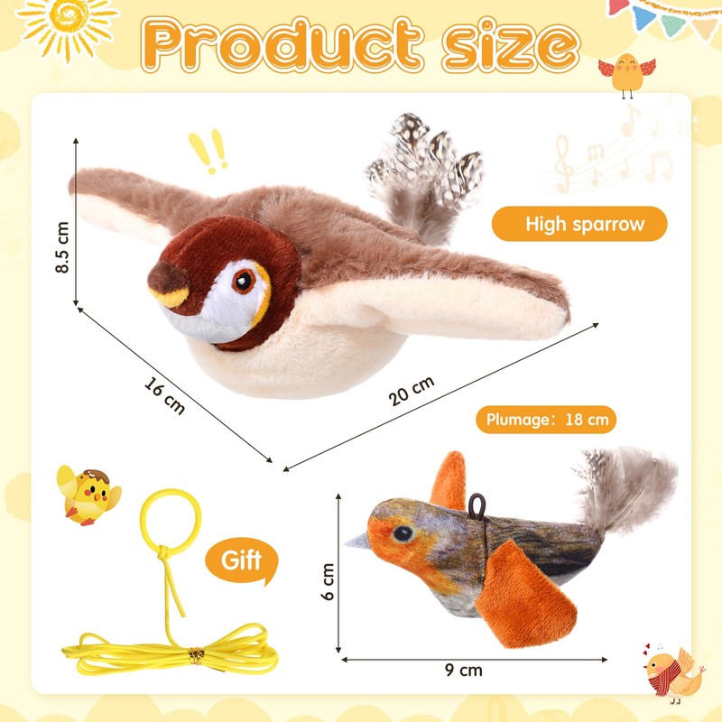 - Interactive Fun for Cats: the simulated big sparrow can flap its wings and chirp, the long-tailed titmouse cannot flap its wings but can chirp, when your kitty touching them, it will react, kicking and chirping like a real sparrow, keeping your cat entertained, curious and engaged, your pets will like it