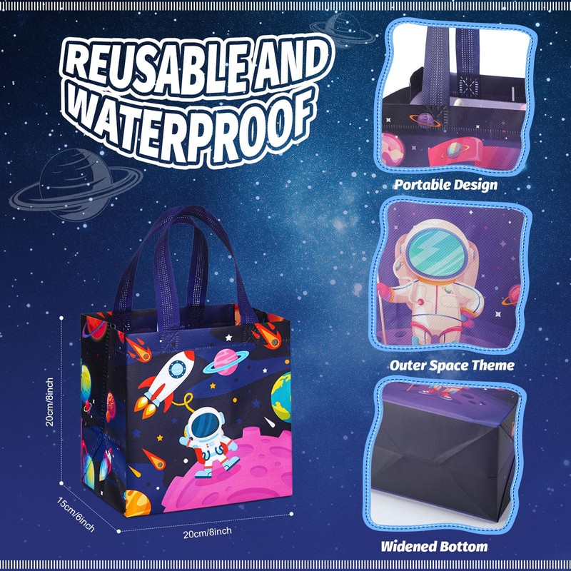 • Durably Crafted for Reusability: made from quality non woven fabric, our outer space party favor bags promise durability and longevity; Featuring sturdy handles and beautifully printed space themed patterns, these bags are not only lightweight but reusable too; With resistance to deformation and fading, these bags offer practicality as well as a decorative touch, making them a good choice for your parties